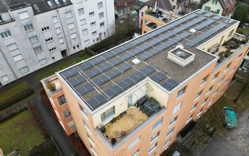 Siedlung/Areal Luft/Wasser-Wärmepumpe PV Ladestation E-Mobilität Energiesystem (PV, E-Mobilität, Wärmepumpe) Siedlung Kloten